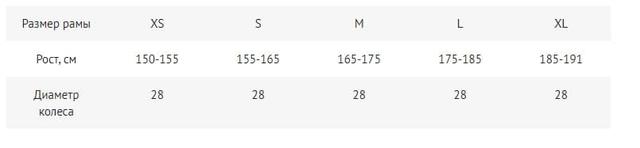 | Зріст, см | Розмір рами | Розмір рами, дюйм | Розмір рами, см |