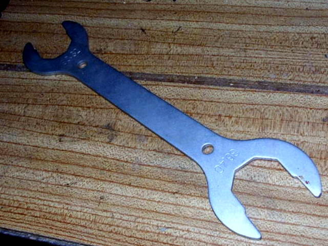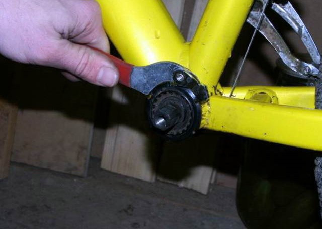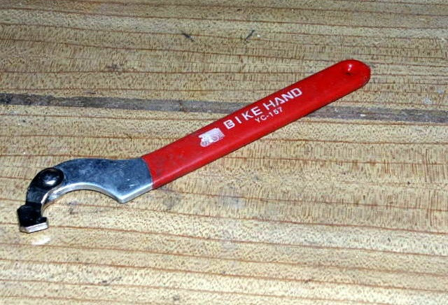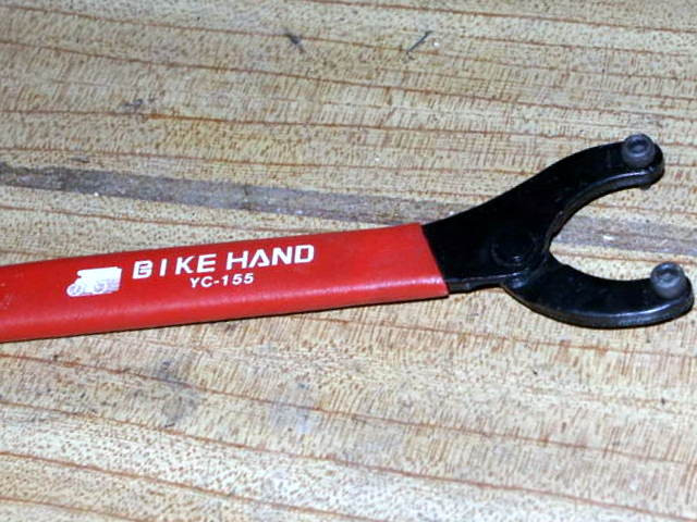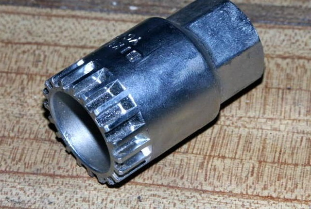 А може знадобитися і такий. Можна обійтися й звичайним ріжковим ключем на 36, або в крайньому випадку застосувати розвідний / газовий ключ. Газовим ключем треба користуватися обережно — можна легко пошкодити раму.