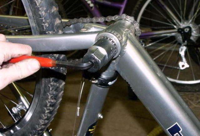 Перед тим, як зняти каретку з рами, необхідно зняти з осі каретки обидва шатуна.