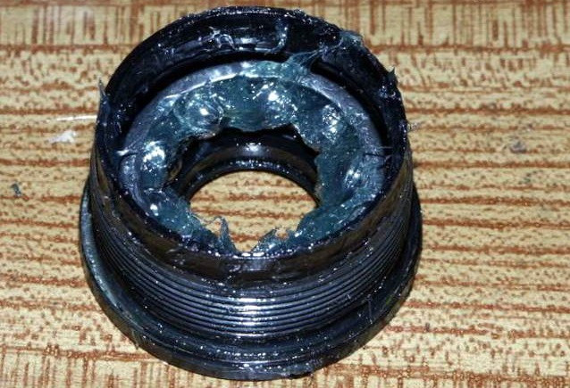 Починаємо з того, що завдамо трохи мастила на різьбу каретки і чашки-адаптера, щоб потім легше було вивертати.